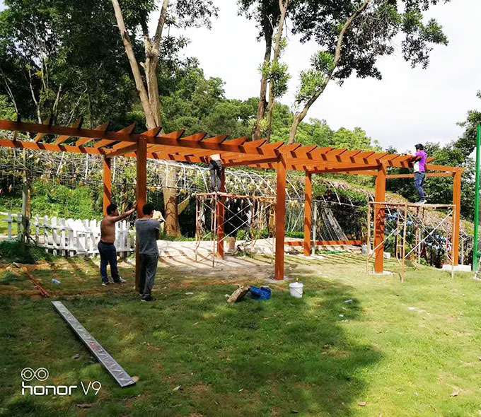 济南来福生鲜配送服务有限公司花架系列产品是采用高强度铝合金为原材料,经酸洗铬化,氧化电泳或静电喷涂,木纹转印处理后,精密定制设计,保障安装。它具有防水防潮,不膨胀不变形,防腐蚀,具有逼真的木质感。成为别墅住宅及市政园林等建筑美丽的风景,还能代替廊子提供遮阴纳凉功能,同时还能用花架作园林大门使用。