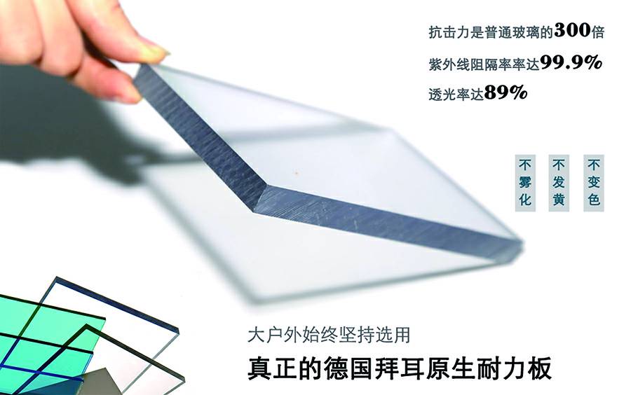 耐力板:真正的德国拜耳原生料耐力板,防止紫外线,抗击力是普通玻璃的300倍;
